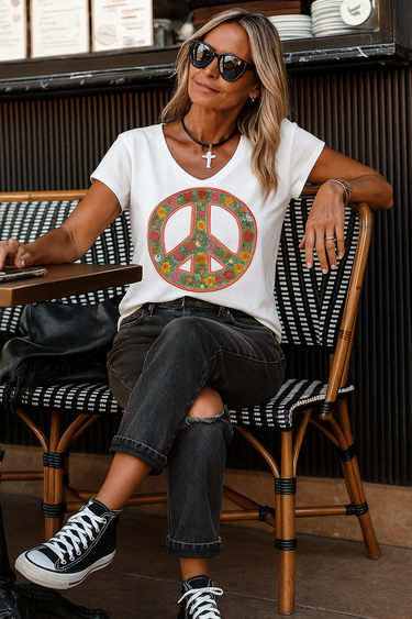 Polera 100% algodón. Color Blanco, estampada Te vas a enamorar de ella! ❤️ cuello V