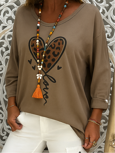 Polera Caqui, Material algodón viscosa estampado en el pecho. Color Chocolate
