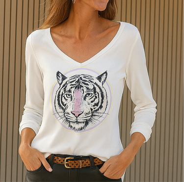 Una Maravilla es esta polera blanca manga larga cuello en V